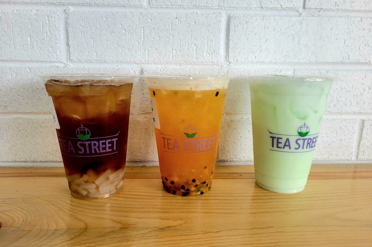 Everything at Tea Street gets made fresh, in house. The team eschews artificial flavors or fake sugar and instead, happily talks to customers about the products and what they may enjoy. Some options may sound familiar, such as iced honey green tea, lemon black tea, and Vietnamese coffee. Other items like the tiger milk tea, cloud teas or longan tea may garner questions.