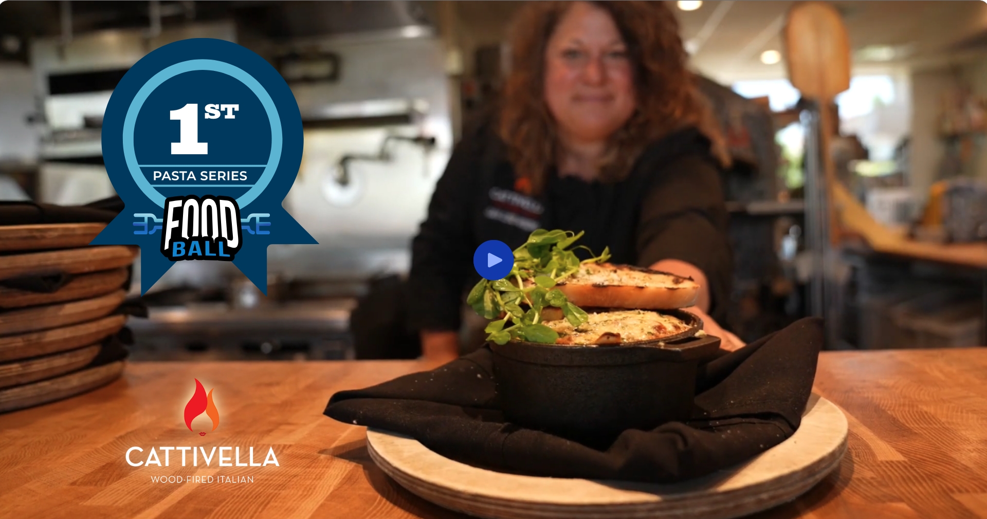 Handmade meatballs made with veal, pork, and beef are served with three-cheese tortellini in a slow-braised Bolognese and bechamel sauce, then topped with bruleed parmigiano and served with grilled bread.