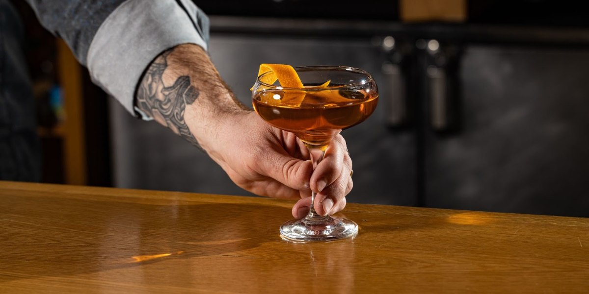 Add all ingredients to a mixing glass, fill with ice, and stir for about one minute. Strain to a chilled coupe glass. Express orange twist and garnish.