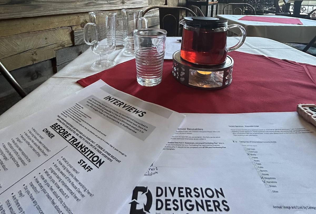 Each participant in the Reuse Denver program gets a $600 stipend to spend on reusable goods. In order to help each business work with the budget, the style goals, and needs of the restaurant, Diversion Designers came in to assist. The company helps make sense of the long-term, cost-saving perks of reusable goods, and showcases how much waste can be rescued from landfills.